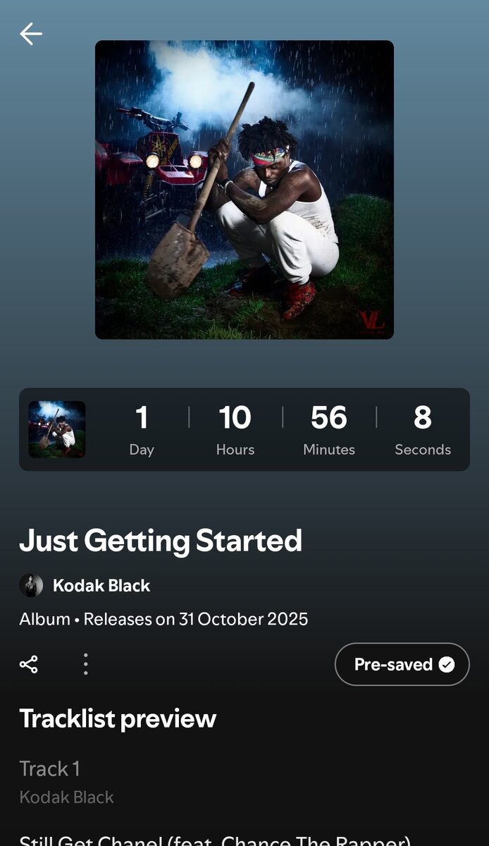 October 29Oct 29 This is also one of the ways I find songs on Spotify all the time. It's a new Kodak Black album which I pre-saved. It's going to be released in less than 2 days.